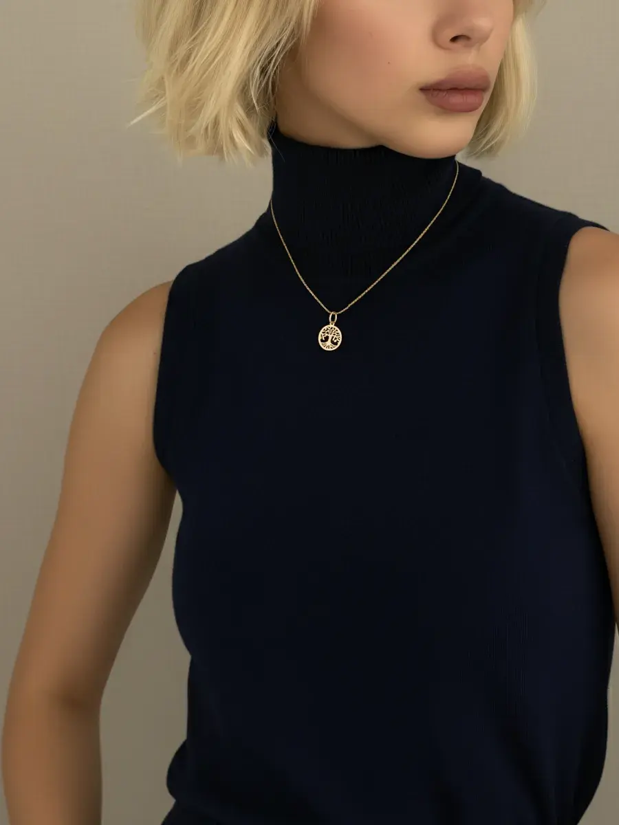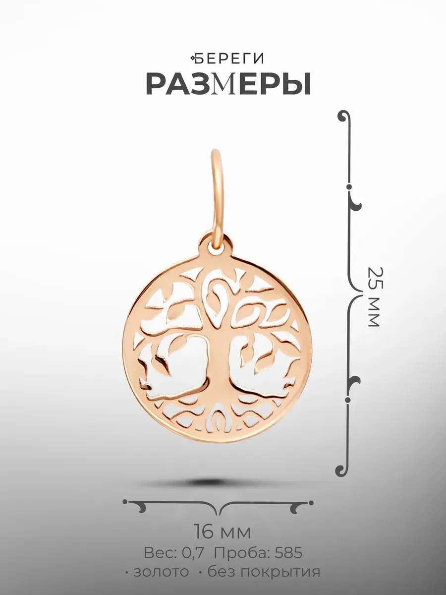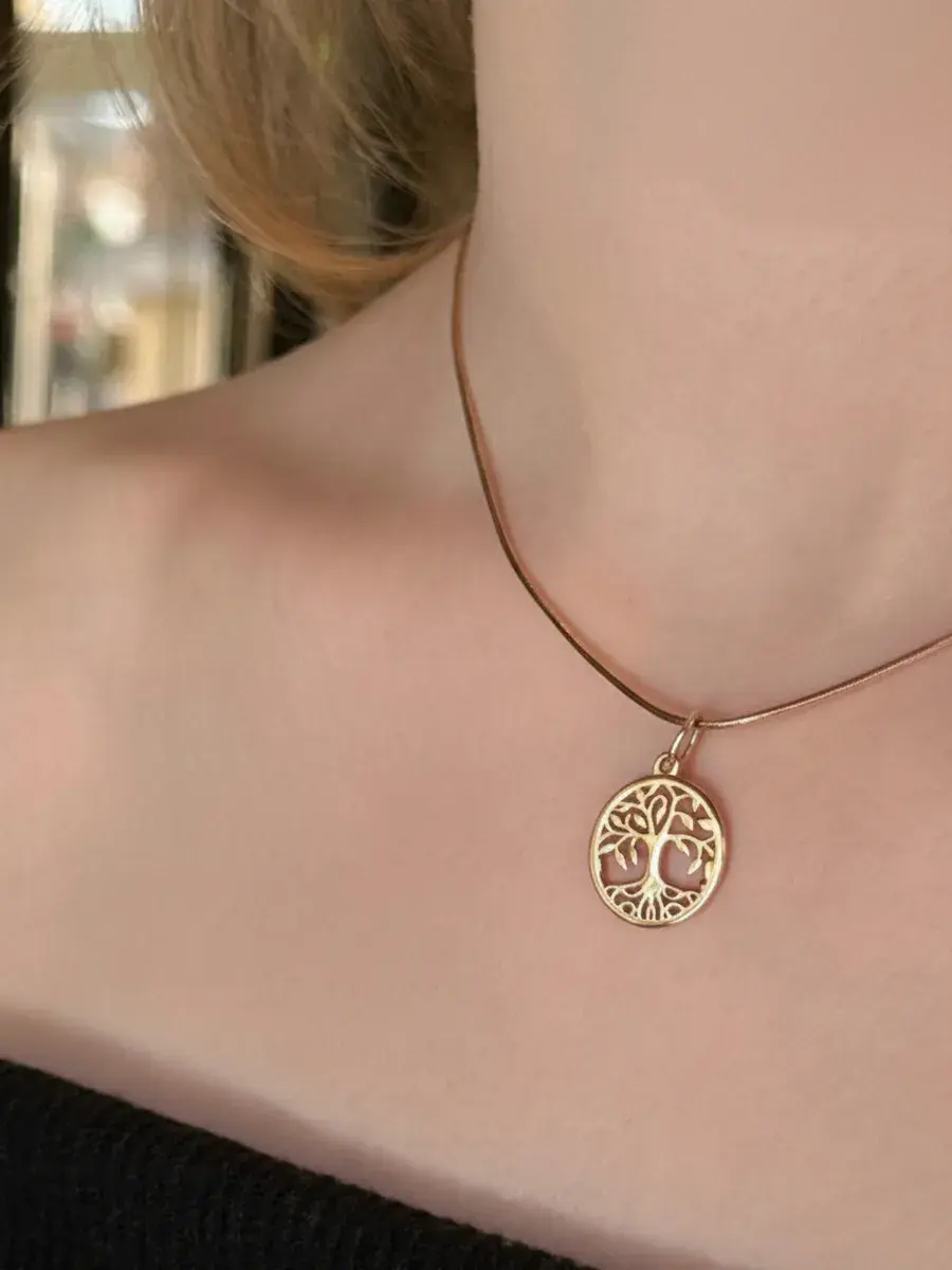 Золотую подвеску в виде дерева можно носить на шнурке или цепочке как амулет на шею или на браслет.
