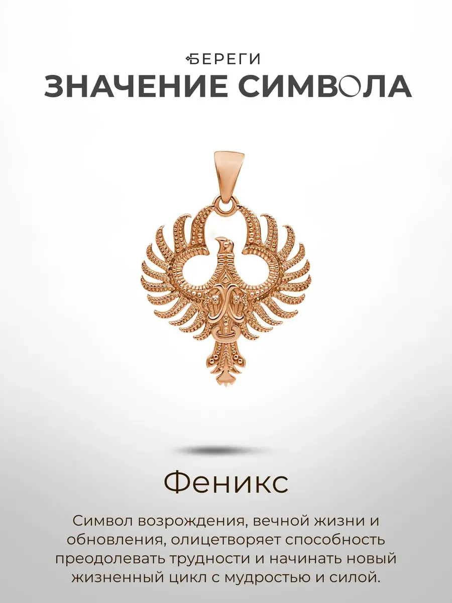 Амулет птица Феникс символизирует лучезарное начало счастливого полета жизни.