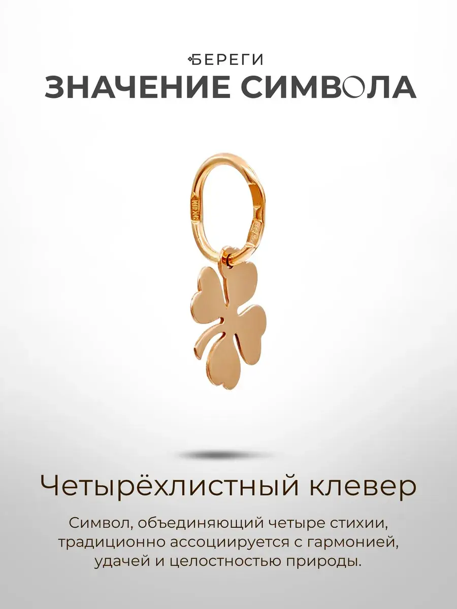 Золотую подвеску в виде клевера можно носить на шнурке или цепочке как амулет на шею или на браслет.