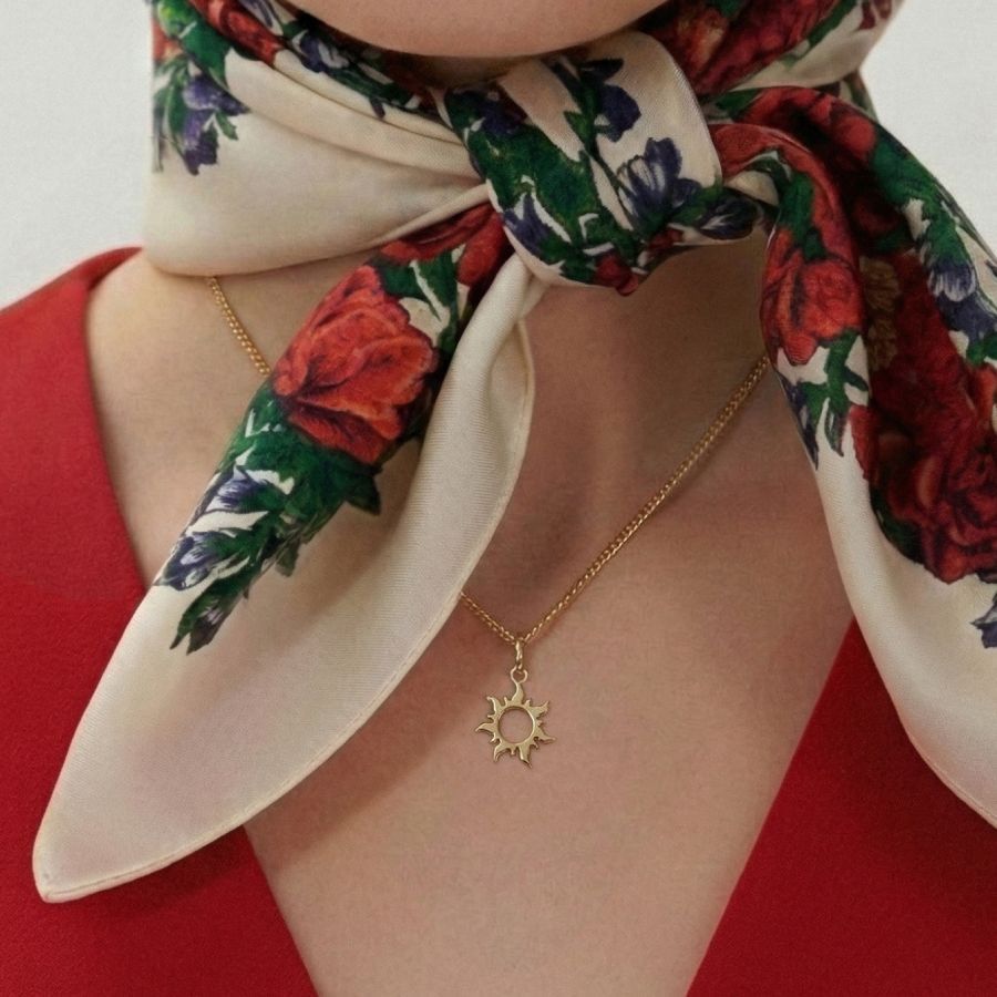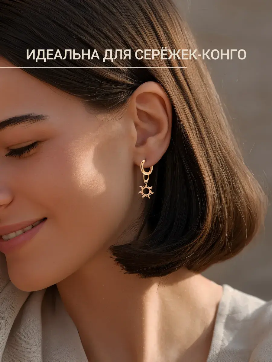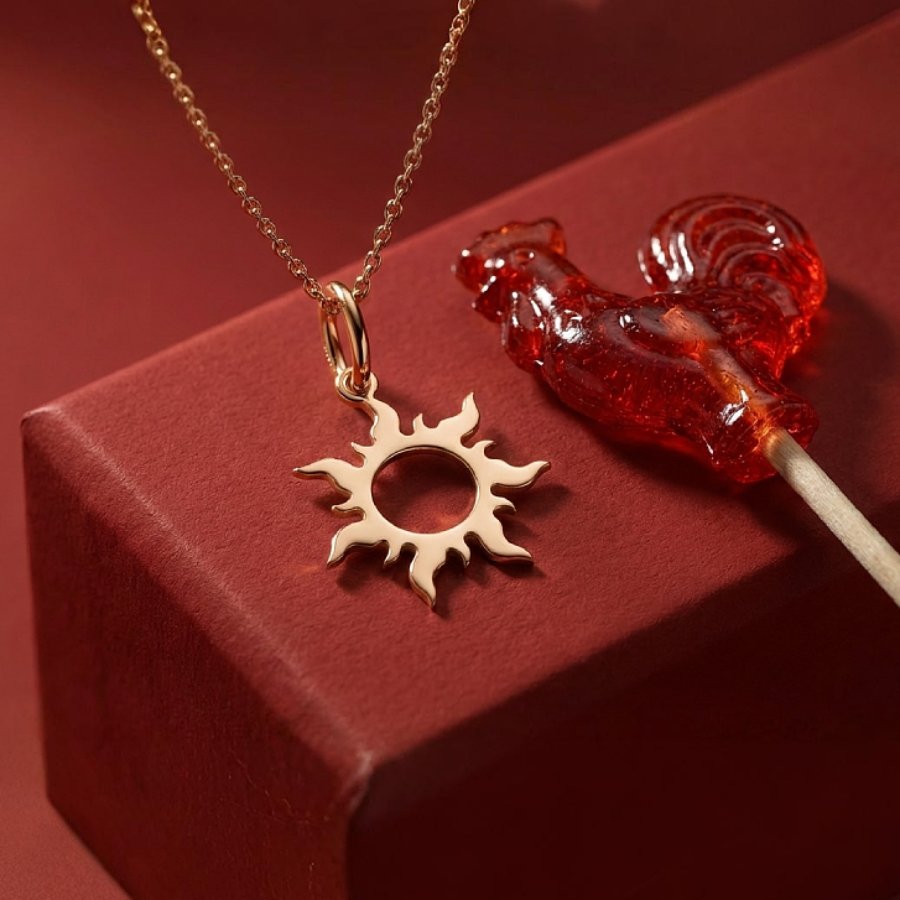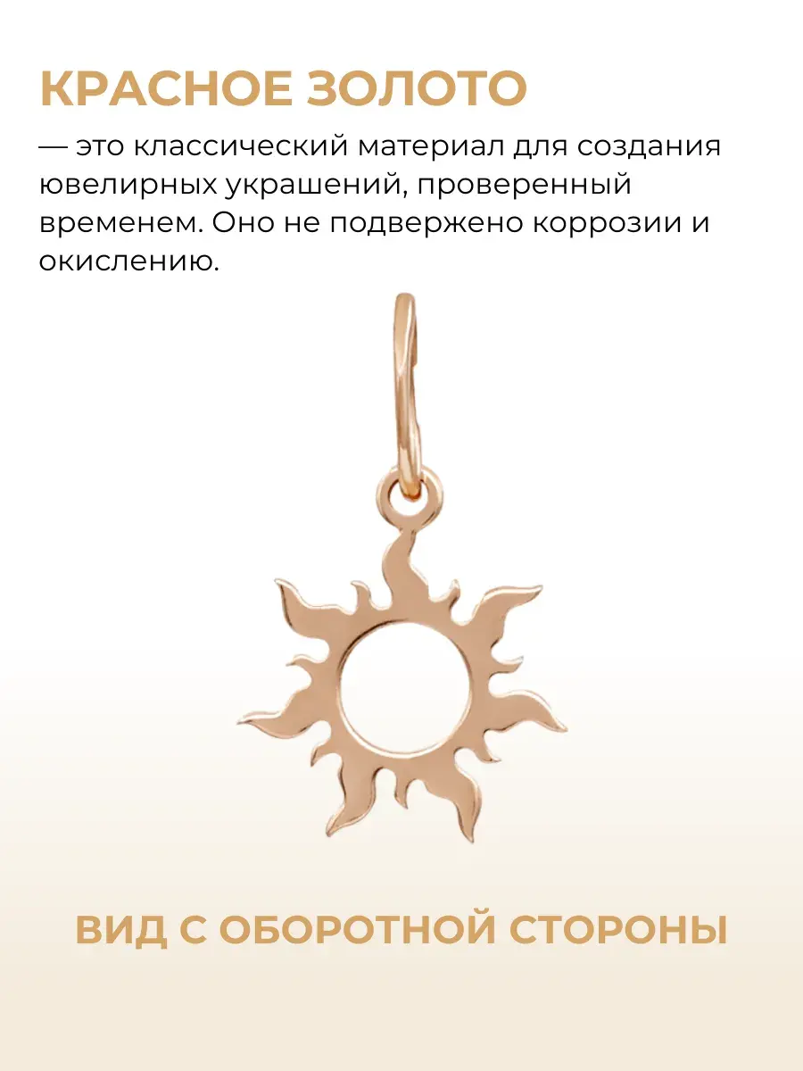 Сияющая подвеска в виде Солнца, изготовленная из блестящего золота 585 пробы, словно лучи солнца, проникает в самые глубины сердца.