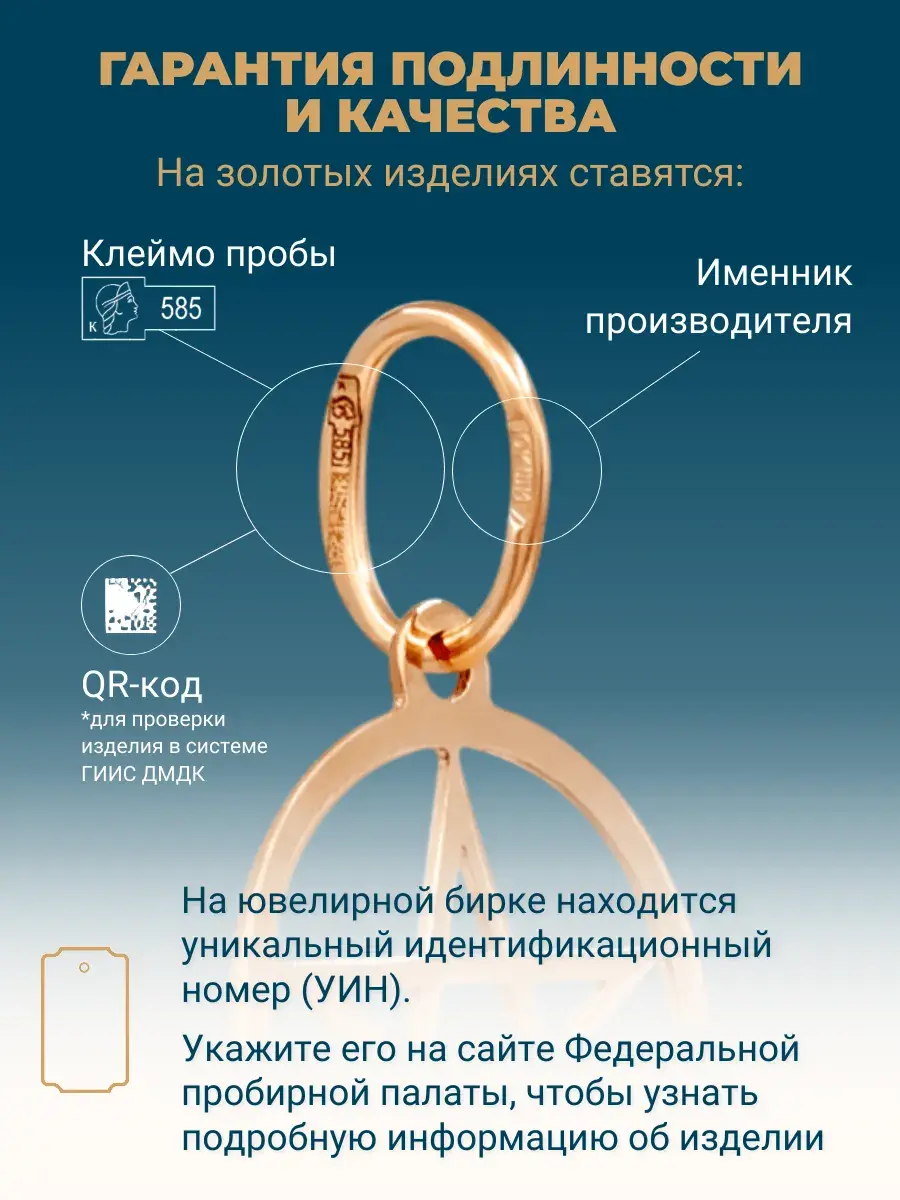 Кулон полностью изготовлен из золота 585 пробы без дополнительного покрытия.