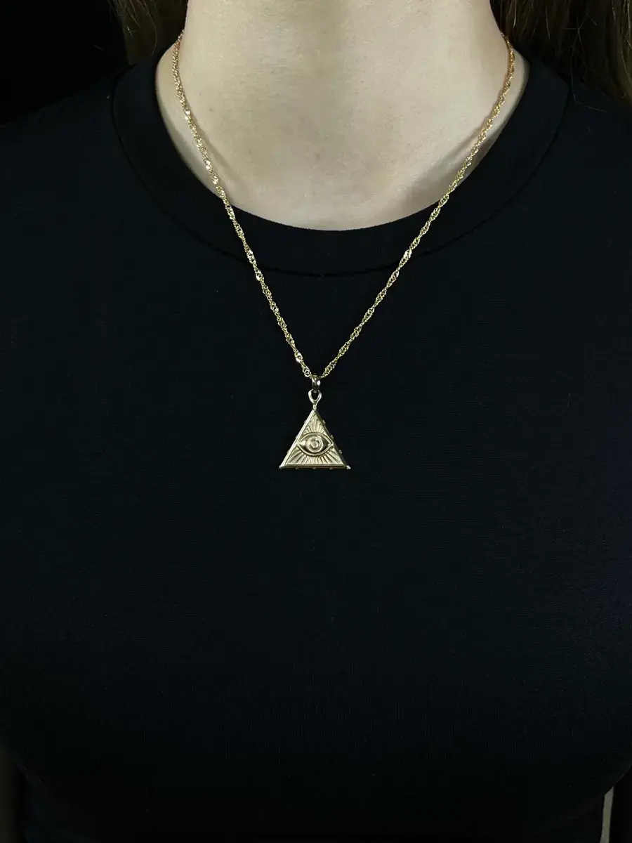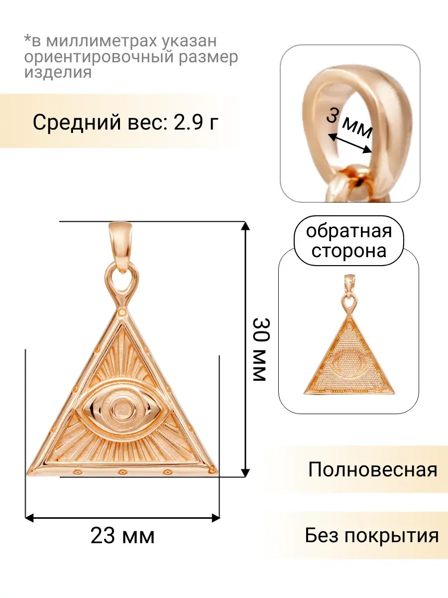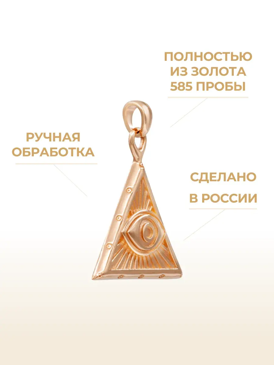 Подвеска Всевидящее Око в треугольнике из красного золота 585 пробы — это символ защиты и бдительности. Ее оригинальный дизайн привлекает внимание и вызывает интерес.
