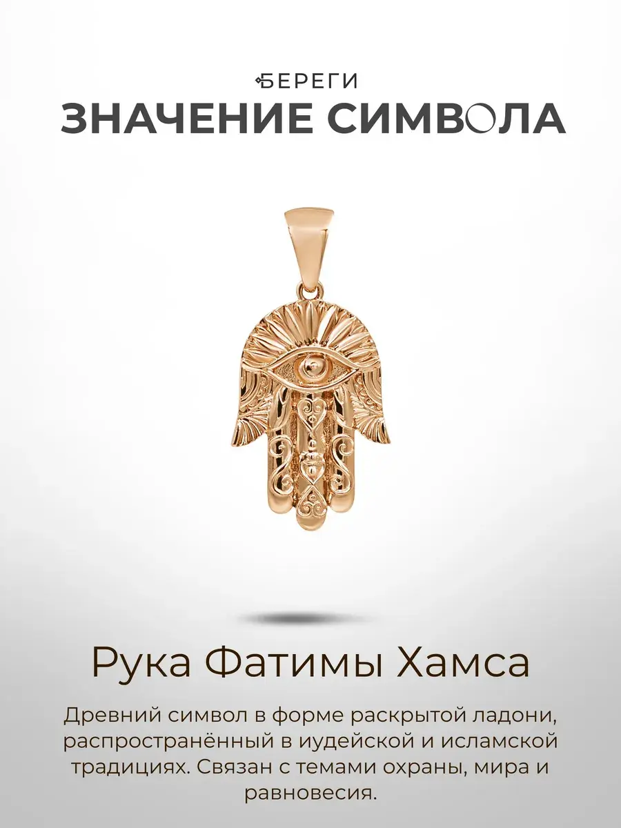 Вы можете купить подвеску рука Бога из золота — пальцы с лицевой части кулона покрыты прекрасными узорами, на обратной стороне всю ладонь также украшает изящная восточная вязь.