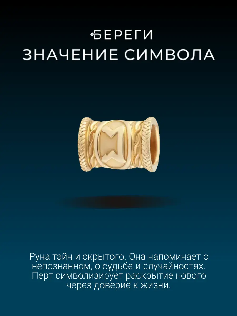 В интернет–магазине Beregy вы можете купить шарм Перт в качестве амулета. Вы можете ознакомиться с фото руны Перт, прочитать её описание, которое представлено на странице нашего блога, данный шарм полностью соответствует оригинальному украшению.