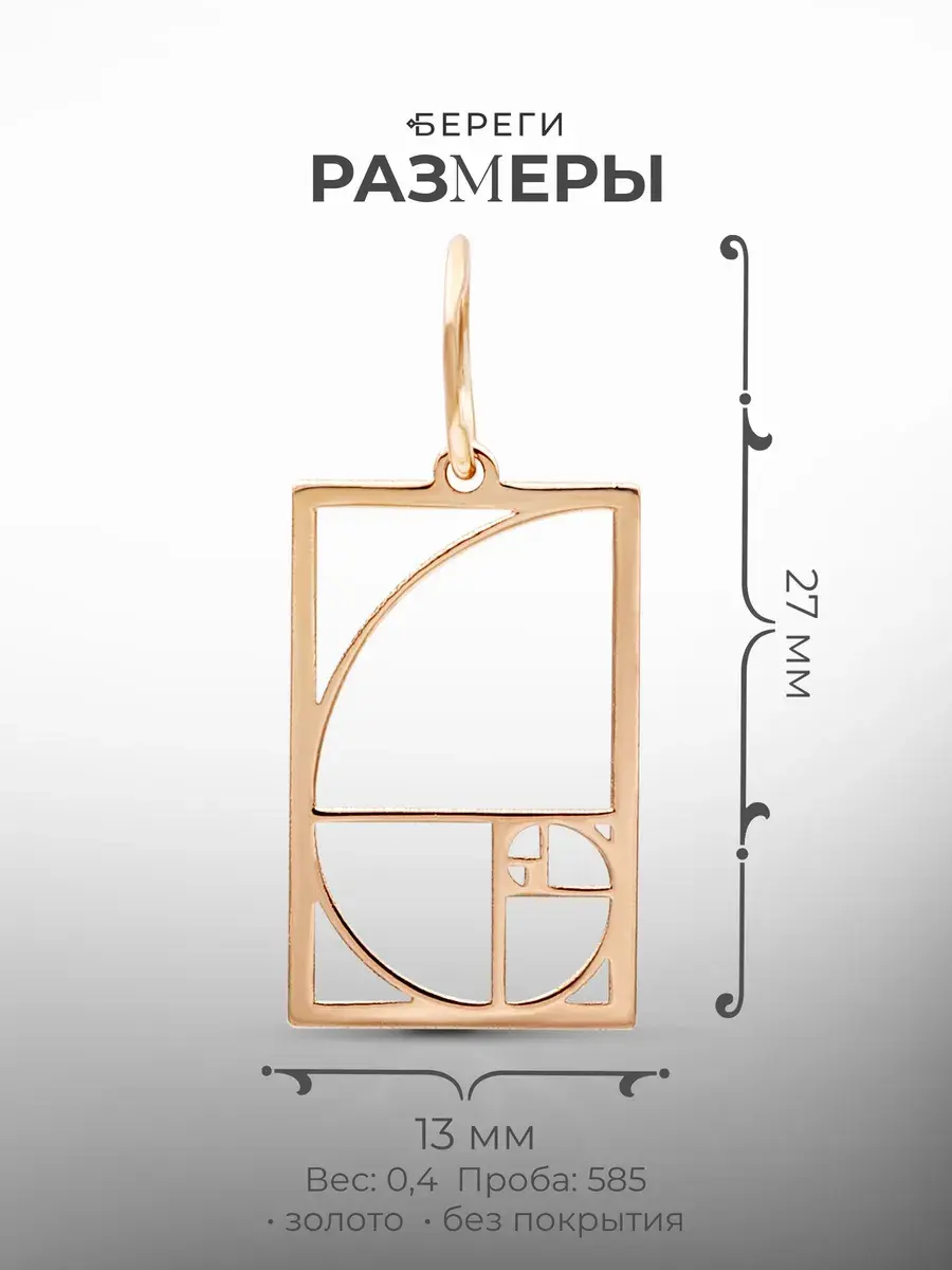 Подвеска Золотое сечение выполнена из красного золота 585 пробы – это означает, что украшение имеет высокое качество и точность деталей. Золотой кулон Золотое сечение – это прекрасный вариант для тех, кто хочет выглядеть изящно и привлекательно.